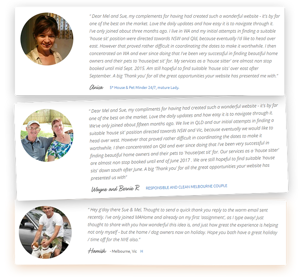 Mindahome connects you with homeowners across Australia who need trusted people to care for their homes and beloved pets while they’re away. It’s a simple exchange: You provide peace of mind by keeping their home secure and their pets happy. In return, you enjoy completely FREE accommodation in locations you’ve always wanted to explore.